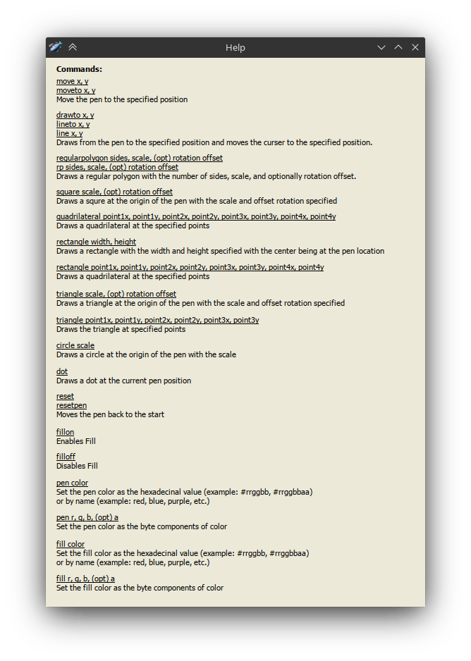 It is a simple drawing program that uses a programming language designed for this project. I was instructed to create a program to meet a specific set of guidelines. I achieved 100% of the available marks in this project, meeting all of the criteria necessary.